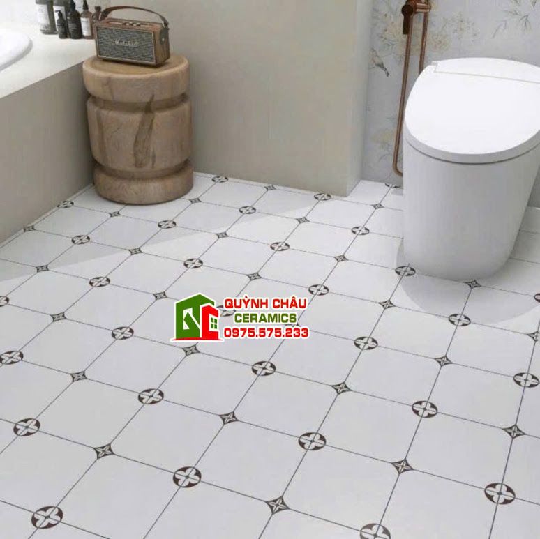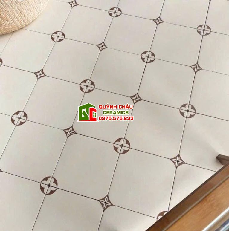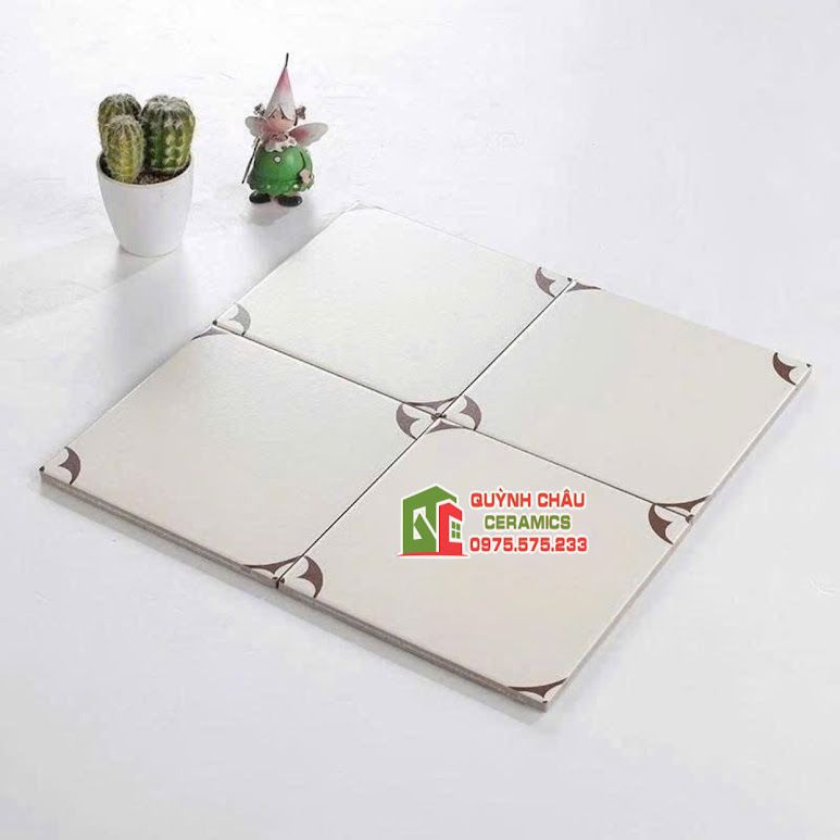 Gạch 20x20 bông hoạ tiết Louis Vuitton trắng kem
