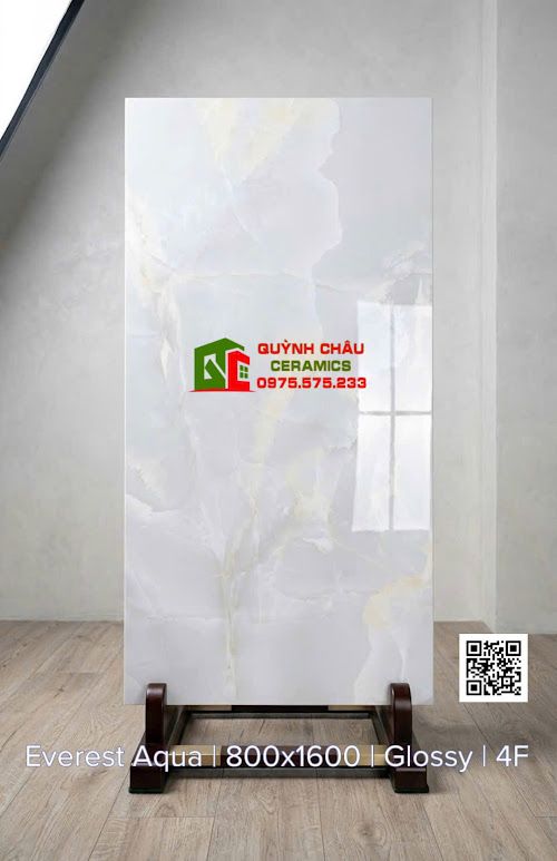 Gạch Ấn Độ 80x160 Trắng Kem Vân Đá Xanh Nhạt Bóng Kiếng: Tuyệt Tác Cho Không Gian Sống Đẳng Cấp