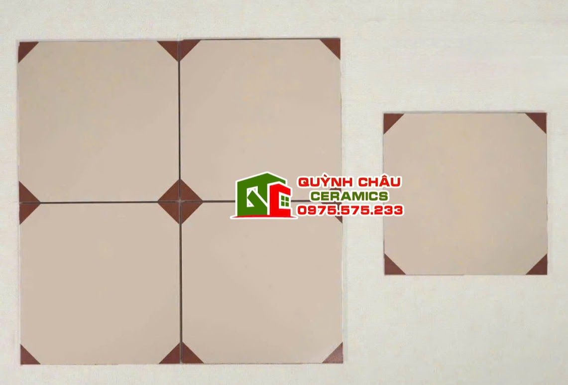 Sản phẩm được thiết kế với kích thước chuẩn 30x30, mô phỏng tinh xảo gạch bông giả cổ truyền thống. Điểm đặc biệt nằm ở họa tiết: bề mặt mờ kem chủ đạo, được nhấn nhá bằng các chi tiết nâu đỏ ở góc, tạo hình hoàn chỉnh một viên bát giác khi ghép nối. Sự kết hợp màu sắc này không chỉ tạo nên một diện mạo độc đáo mà còn toát lên nét cổ điển đầy nghệ thuật và sang trọng.