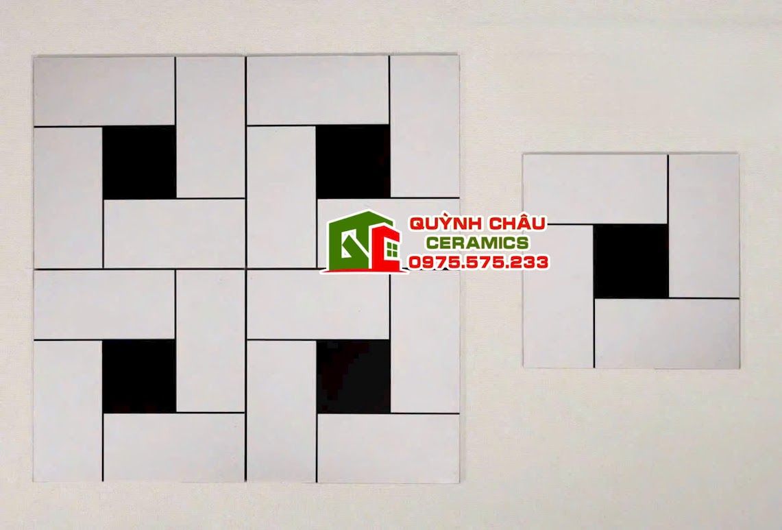 Gạch bông hoa văn vuông trắng đen hình thẻ 30x30 cm