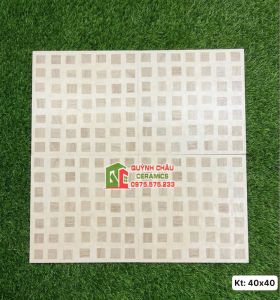 Gạch bông lát nền 40x40 vàng kem hoạ tiết caro vân gỗ