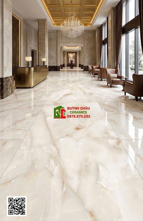 - Ốp lát mặt tiền, sảnh lớn: Kích thước lớn ít đường ron kết hợp cùng men bóng kính giúp khu vực mặt tiền thêm phần lộng lẫy và thu hút mọi ánh nhìn.