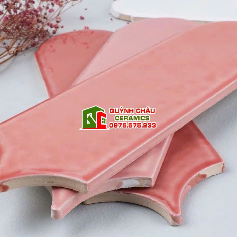Gạch thẻ lông vũ màu hồng đậm gợn sóng
