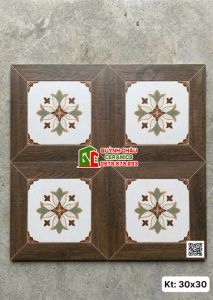 Gạch bông hoạ tiết viền vân gỗ nâu 30x30cm