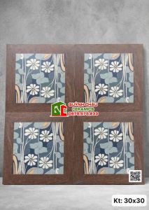 Gạch bông trang trí viền gỗ 30x30 hoạ tiết cúc hoạ mi