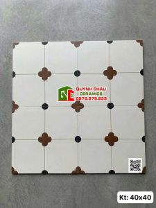 Gạch bông trung quốc 40x40 hoạ tiết kem nâu đen cổ điển