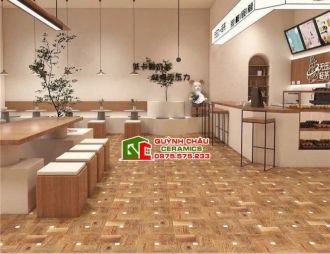 Quán cà phê, quán bar: Mang đến phong cách mộc mạc, gần gũi nhưng không kém phần hiện đại và cá tính. Gạch giả vân gỗ giúp tạo điểm nhấn độc đáo, thu hút khách hàng và tạo nên không khí ấm cúng cho quán.